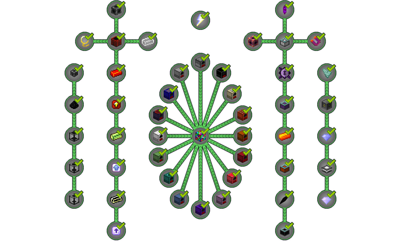 The final quest line is about hoarding mass quantities of items. This quest line is for those who like the grind of automation and want to experience all the modpack has to offer. These quests will be much more difficult than most other quests and will require an expert knowledge of how to use the automation tools available to you is needed. You don't need to finish these to "beat" the modpack, but they are available if you want to go for 100% completion.